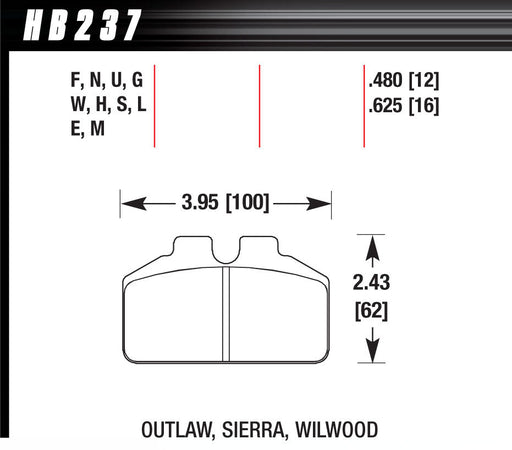 HAWK BRAKEBrake Pads - Black Compound - Low-Intermediate Torque - Low Temperature - Wilwood Dynalite Single / Sierra Single Caliper - Set of 4