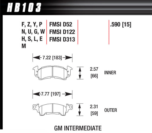 HAWK BRAKEBrake Pads - HT-10 Compound - Intermediate-High Torque - Mid-High Temperature - GM Fullsize Caliper - Set of 4