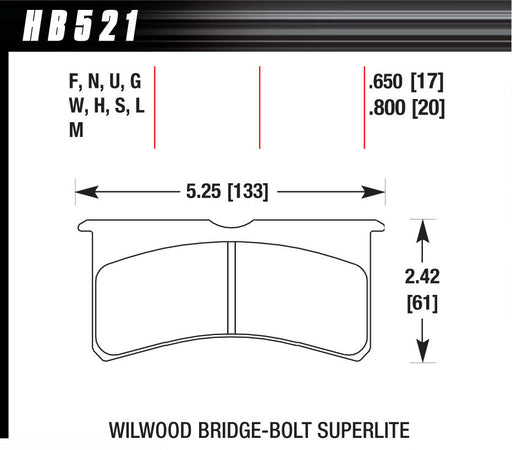 HAWK BRAKEBrake Pads - DTC-50 Compound - High Torque - High Temperature - Wilwood Superlite Bridge Bolt Style Caliper - Set of 4