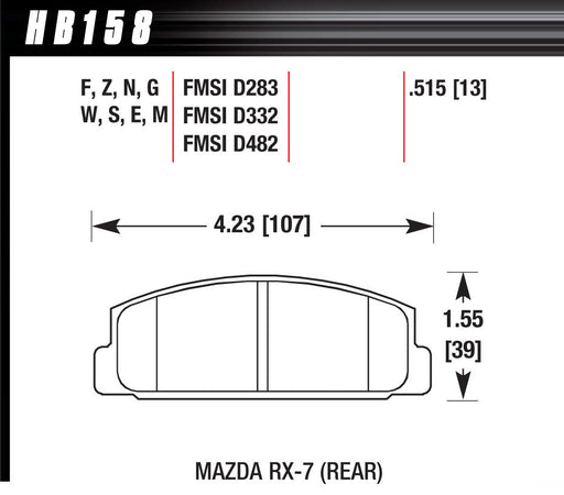 HAWK BRAKEBrake Pads - HPS Compound - High Torque - Rear - Mazda 1984-2005 - Set of 4