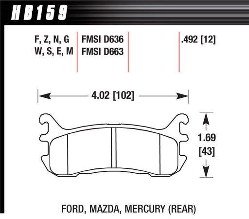 HAWK BRAKEBrake Pads - Blue 9012 Compound - Low-Intermediate Torque - Low-Mid Temperature - Rear - Mazda / Mercury / Ford / Chevrolet 1994-2005 - Set of 4