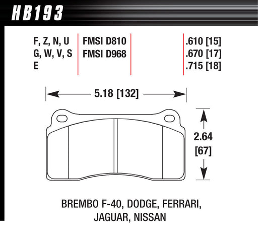 HAWK BRAKEBrake Pads - HPS Compound - Front / Rear - Dodge Viper 2008-17 / Ferrari F40 1988-95 / Jaguar X 1997-2006 - Kit of 4