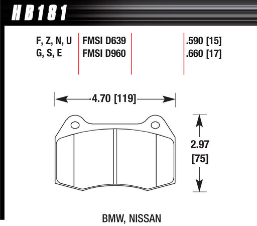 HAWK BRAKEBrake Pads - HP Plus Compound - Rear - Nissan - Set of 4