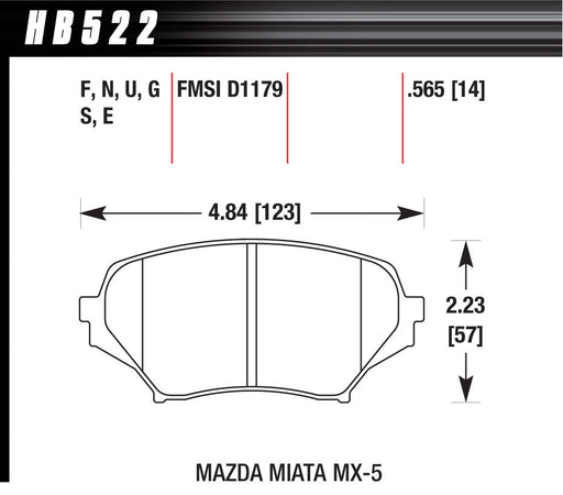 HAWK BRAKEBrake Pads - HPS Compound - High Torque - Rear - Mazda Miata 2006-14 - Set of 4