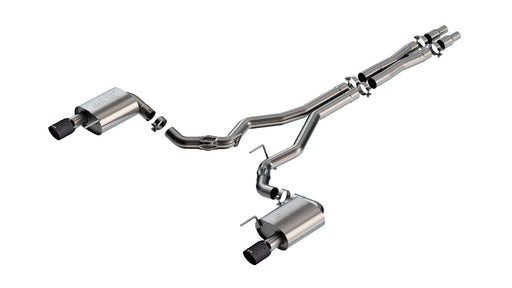 BORLAExhaust System - ATAK - Cat-Back - 2.5 in Diameter - 4 in Black Polished Tips - Stainless - Natural - Ford Coyote - Ford Mustang 2024 - Kit