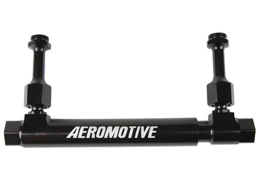 AEROMOTIVEFuel Log - Adjustable - 10 AN Female Inlet - 10 AN Female Outlet - Aluminum - Black Anodized - Holley Carburetors - Each
